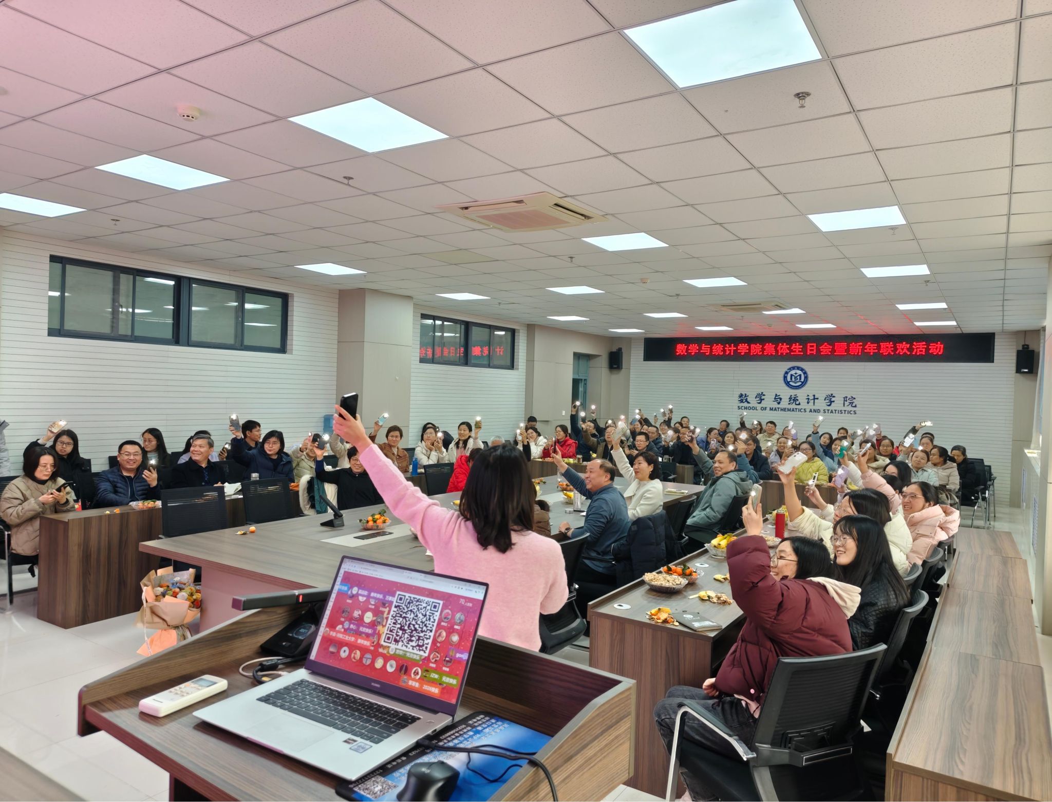 为进一步增强学院凝聚力,营造温馨和谐的学院文化和节日氛围,12月30日下午,数学与统计学院工会在惟德楼315会议室举办2025年集体生日会暨新年联欢活动。学院领导班子成员及全体教职工齐聚一堂,共庆集体生日,喜迎新年到来。活动由学院党委副书记、工会主席程凯主持。