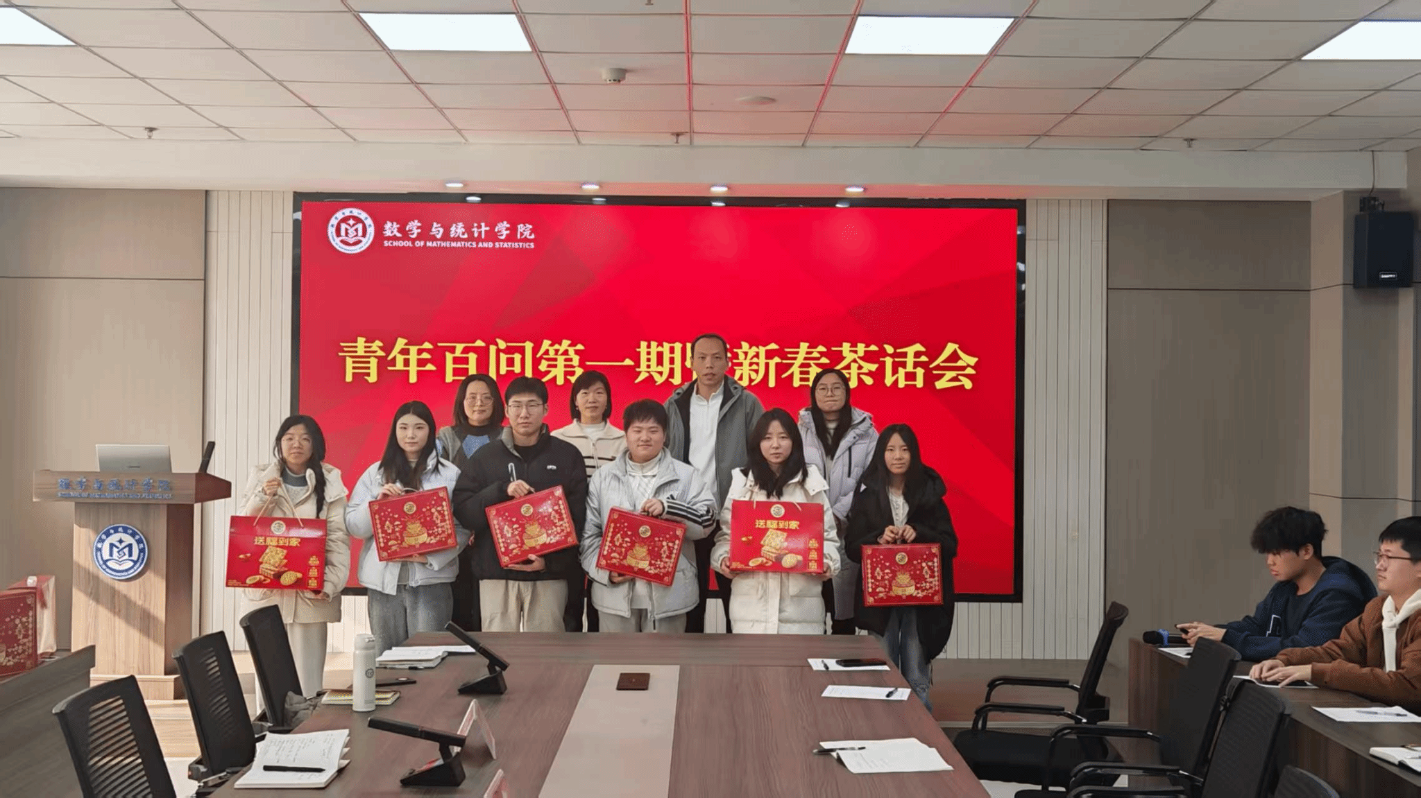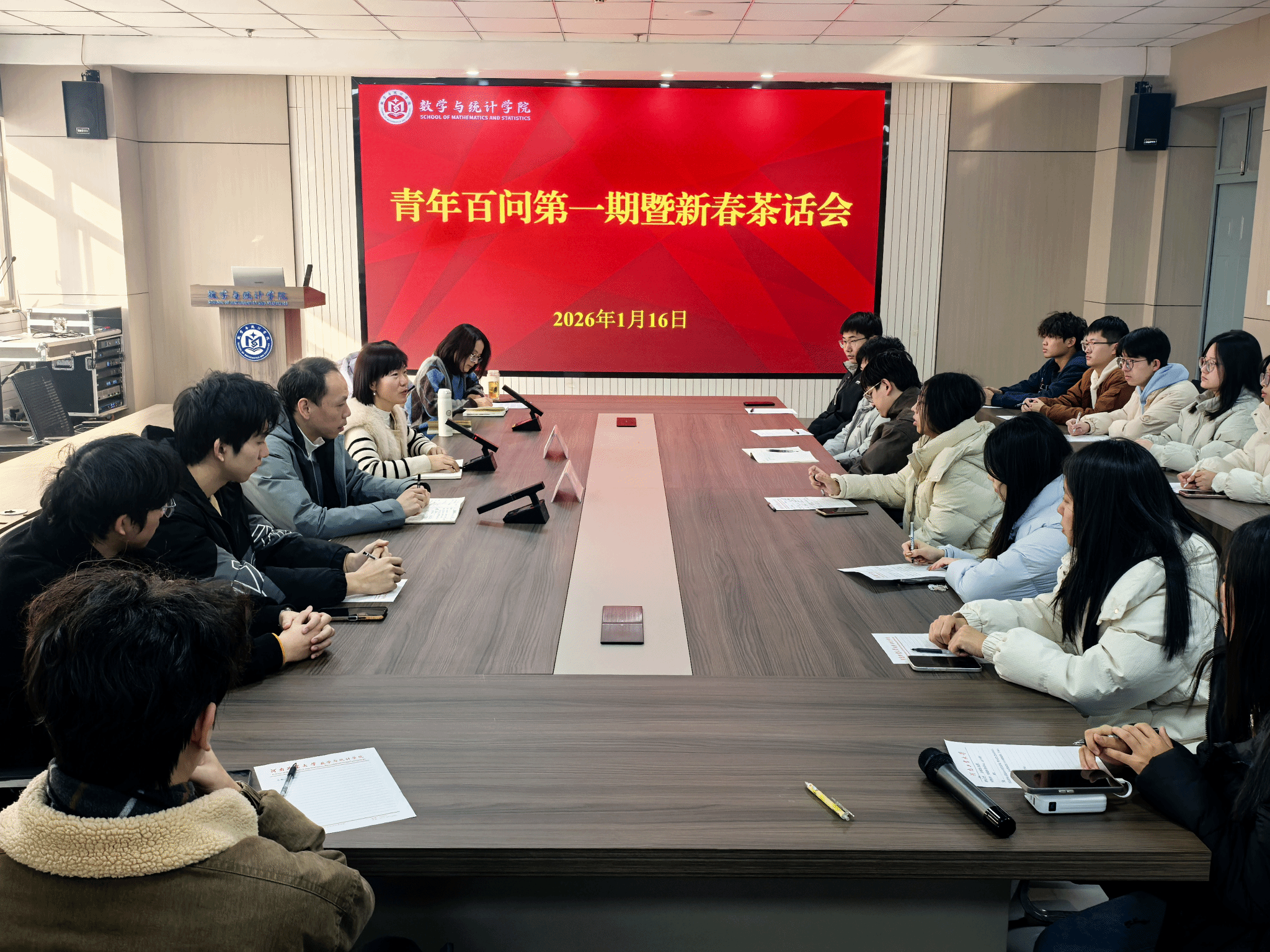 为了及时解疑答惑,助力学生成长成才,经过精心谋划,1月16日上午,数学与统计学院“青年百问”第一期暨新春茶话会,在惟德楼315会议室举行。院学院书记郭红彦、党委副书记程凯,和各年级本科生、研究生代表进行深度交流。院学工办主任赵洁主持。