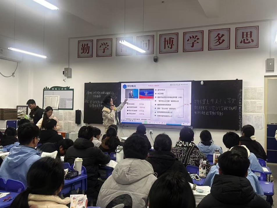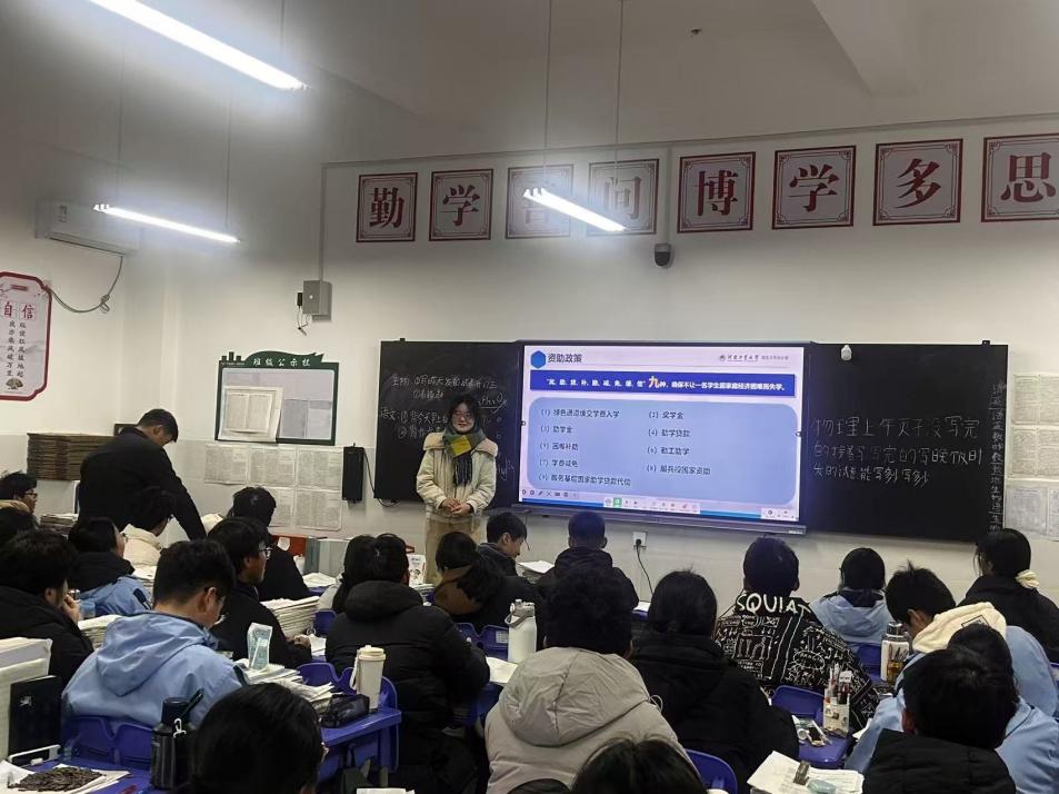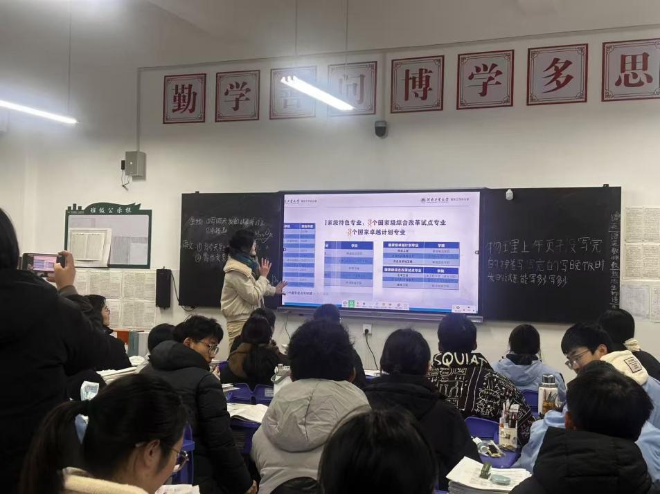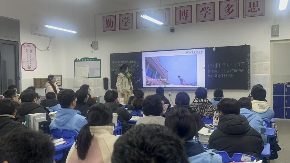 为扎实推进“返家乡”社会实践活动落地见效,搭建高校与高中的优质沟通桥梁,帮助高三学子明晰升学方向、破解备考困惑、探寻大学奥秘,1月26日,河南工业大学数学与统计学院学子陈慧娟,怀揣着对母校的深切感恩与牵挂,回到了驻马店市平舆县第一高级中学,为高三年级二班的同学们带来了一场干货十足、温情满满的宣讲交流活动,用青春之力为学弟学妹们的逐梦之路保驾护航。