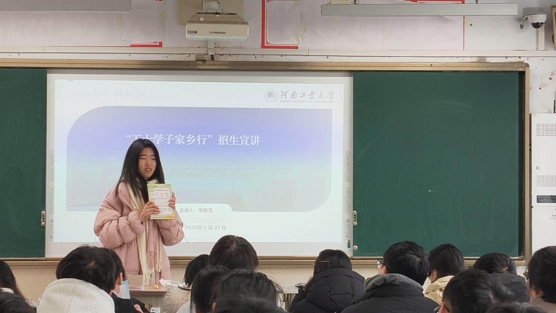 为深入贯彻落实高校“返家乡”社会实践要求,搭建优质生源基地校沟通桥梁,助力高三学子明晰升学方向、坚定备考信念,1月27日,河南工业大学学子宋依凡重返家乡母校——新密市实验高级中学,走进311班开展专题招生宣讲。